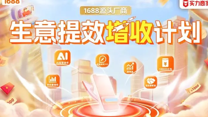 生意確實性弱?利潤低?經營門檻高?1688推出《生意提效增收計劃》,幫助商家降低經營門檻,提高生意效率和生意確定性,持續助力增長!