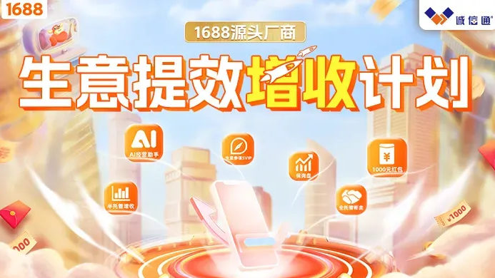 【誠信通版】生意確實性弱?利潤低?經營門檻高?1688推出《生意提效增收計劃》,幫助商家降低經營門檻,提高生意效率和生意確定性,持續助力增長!